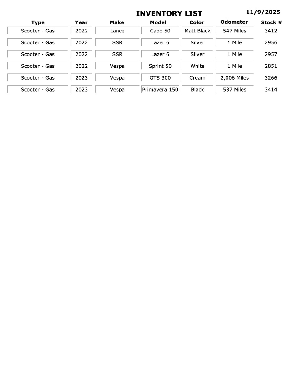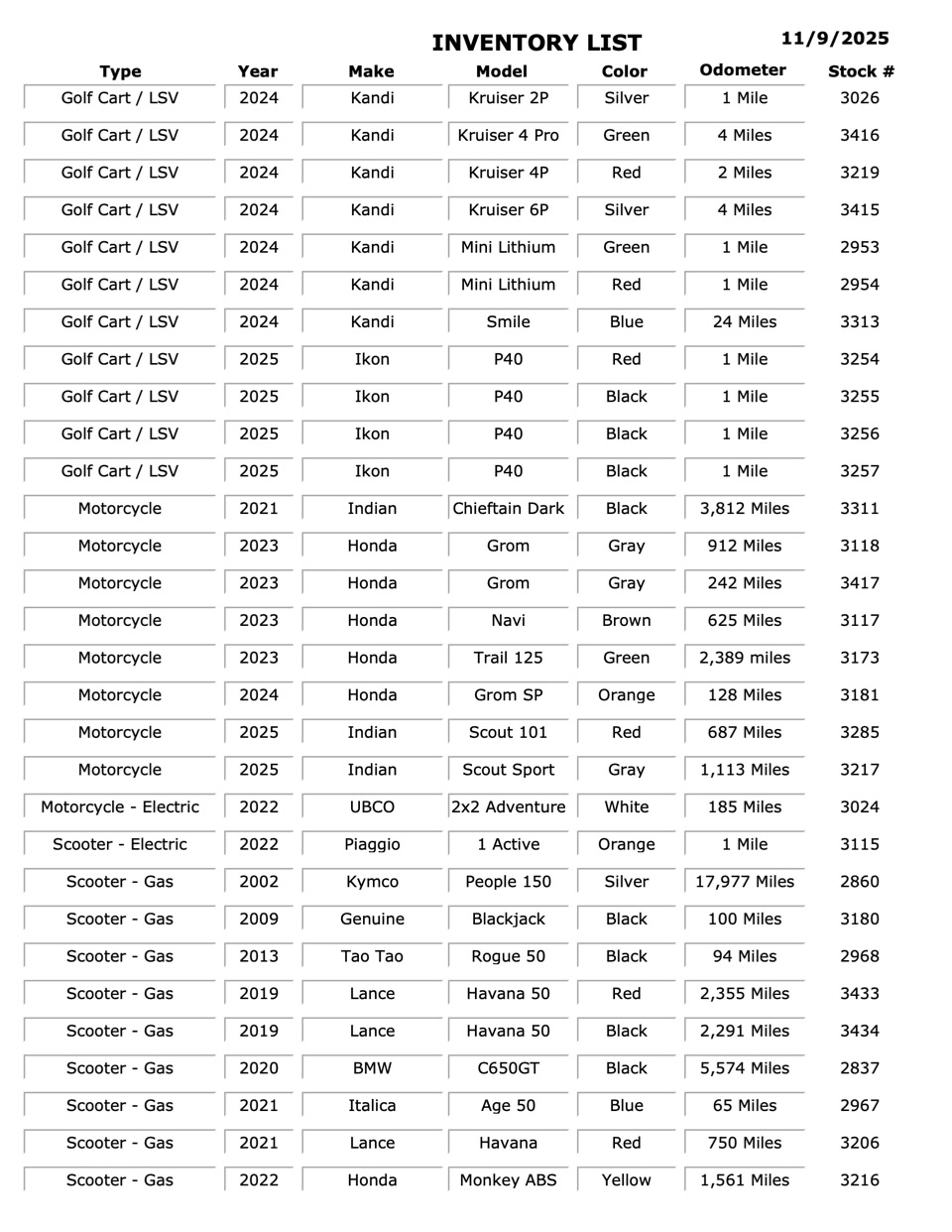 PRE-OWNED INVENTORY: